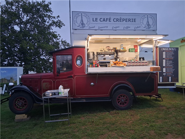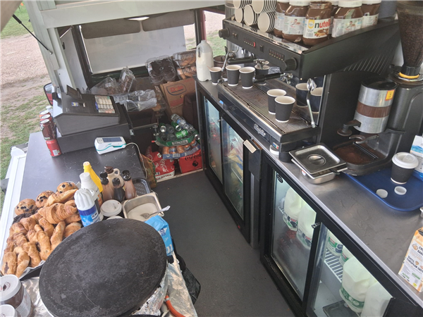 At the moment used as crepes and coffee but suitable for other catering idea as well..