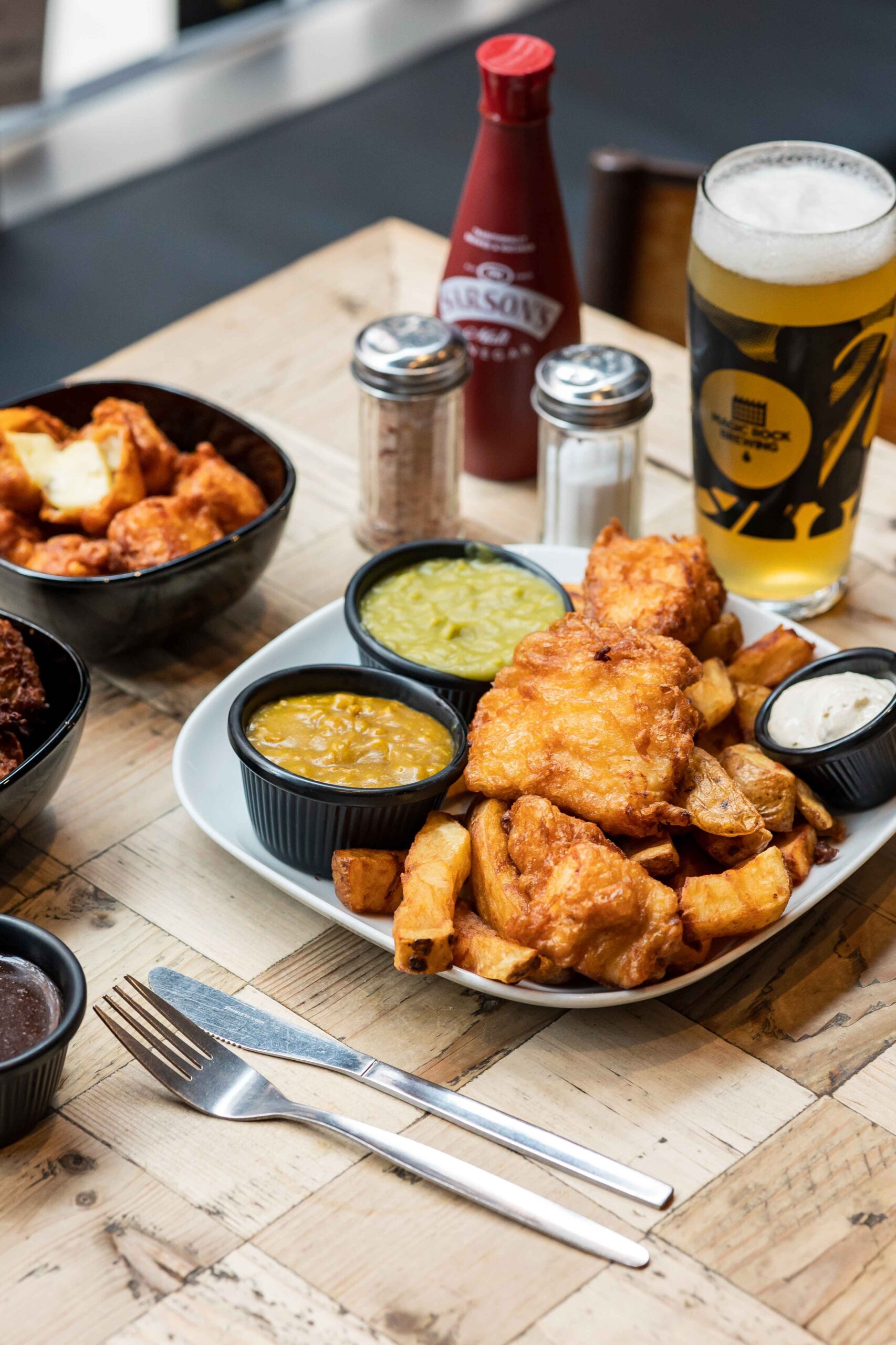 Ozzie has always been passionate about the business being community-focused, and this location meant it would be in a neighbourly setting, be somewhere people would come and spend time, and could enjoy the atmosphere they wished to create. Ozzie explains how “I didn’t want it to just be a fish and chip takeaway. We have a licensed bar, we put on loads of cultural events like art fairs, scratch battles, music producer meets. We want it to mean something to people – we try to connect the area, so for example we work with a charity called Manchester Cares where we look to bridge the gap between older and younger generations in the area over a chippy tea.”