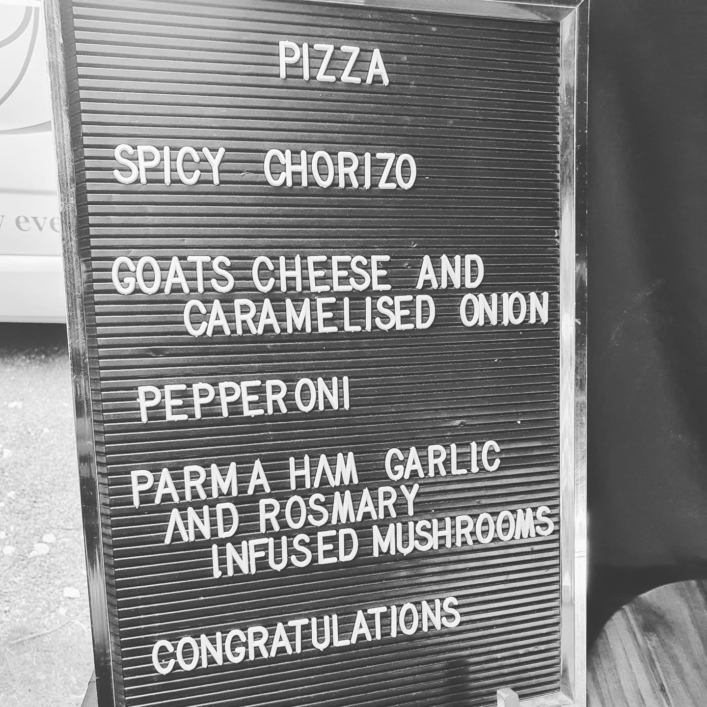 We decide on the menu seasonally and sustainably by using local produce where we can. We serve everything from the classics like margherita and pepperoni and then more imaginative ideas like salami, gorgonzola and wild garlic pesto and SOSR (spinach, olives, sun dried tomatoes and roquito peppers) with a gremolata dressing