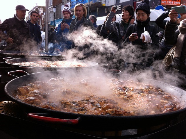 It can be hard to balance staying true to a dishes’ tradition, whilst adapting to the realities of serving food on a much larger scale at a market in cold, rainy England. ‘It took me five or six years to learn about reheating our paellas after they’d gone cold, especially in the winter. A member of my staff said ‘why don’t we reheat it?’ and I said ‘no you can’t do that, they don’t do that in Spain.’ He was Spanish and he said ‘but Nick, we’re not in Spain.’’