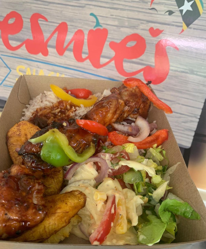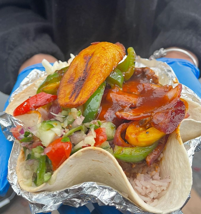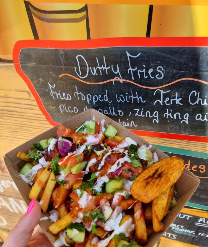 I don’t represent one island as such, I pull from the different islands and create my thing. For example, one of our most popular creations is our Caribbean Burger where our burger bun is a giant fried dumpling/Johnny Cake. On St Maarten the Spanish fried dumplings/Johnny cakes are large, flat, and round, we replicate this and fill it with the Jamaican influence of jerk chicken, drizzled with our homemade BBQ sauce and fried sweet plantain. Our Dutty Fries are fries topped with the Mexican pico de gallo drizzled with zing ting aioli and a creole spicy mayo then topped with fried sweet plantain and crispy onions. I am also very keen on vegan Caribbean food and it’s a passion of mine to ensure that vegan food is amazing as well. I was vegan for 16 years and back in those days it was just mushrooms, tomatoes, and nut loaf. Vegan food has come a long way, I made vegan oxtail from scratch the other day and I was delighted with the results!