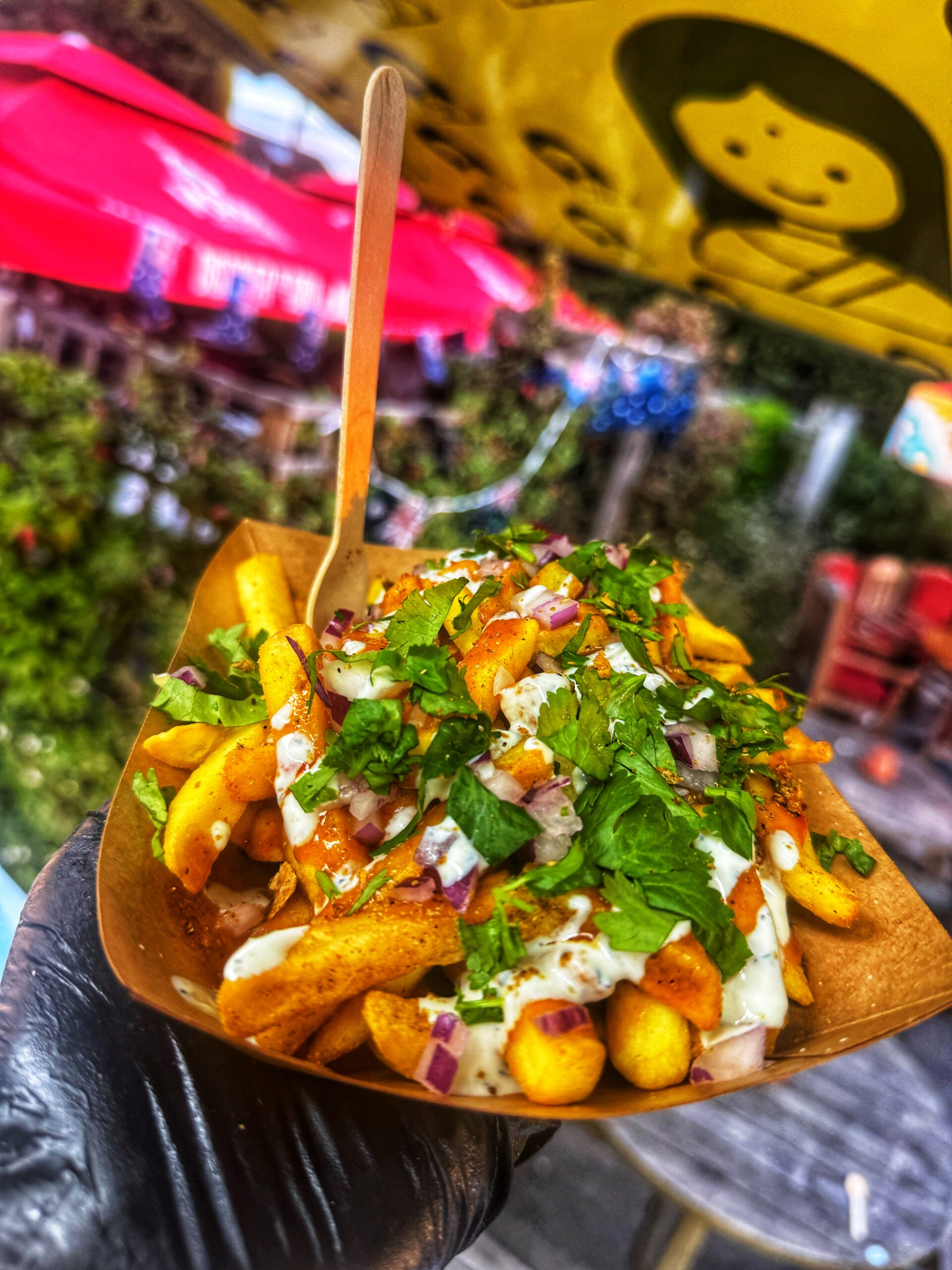 We started setting up before sunrise, the air was cold, the city still quiet and then suddenly Trafalgar Square came alive with colour, music and the smell of fresh masala chips frying. Within minutes of opening, there were queues forming, people taking photos, and that hum of energy only big events have.