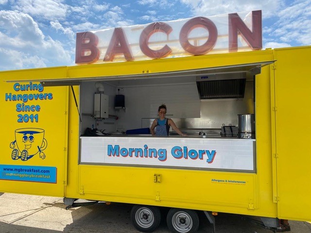 Morning Glory is the breakfast-focused brainchild of Jen and her partner James where they serve breakfast from 7am to 7pm at various festivals across the summer. When Jen decided to start her own business, it felt like a natural progression in her career after years of experience in a similar field. ‘It’s what I’ve always done. I made a lot of mistakes that I’m sure had I made on my own would have been harrowing, but now they have stuck in my mind’ admits Jen. These mistakes may have been plentiful, but so too were the learning opportunities that gave Jen the confidence to take over the then aptly named Little Green Trailer, even if, as she confesses, it was a poor choice of name. ‘We were in the process of taking over the business and there was a moment of ‘what are we going to call ourselves?’ and a friend of mine suggested giving it a holding name like Little Green Trailer or something and we did. It was a pretty terrible name; it didn’t really describe anything we sell!’ The name may have only been a holding place, but the now renamed Morning Glory, is here to stay and with a festival focused season, Jen and James have built a business that gives them everything they need; a healthy work-life balance, the chance to work together and the opportunity to meet new, exciting people every summer.
