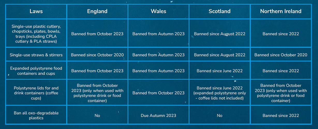 This new law will bring England and Wales in line with Scotland and Northern Ireland, who both had previously introduced similar bans on single-use plastics in 2022 and 2020 respectively.