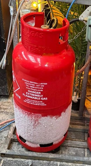 Do not ignore frosting on connected cylinders. It is not because of cold weather conditions.